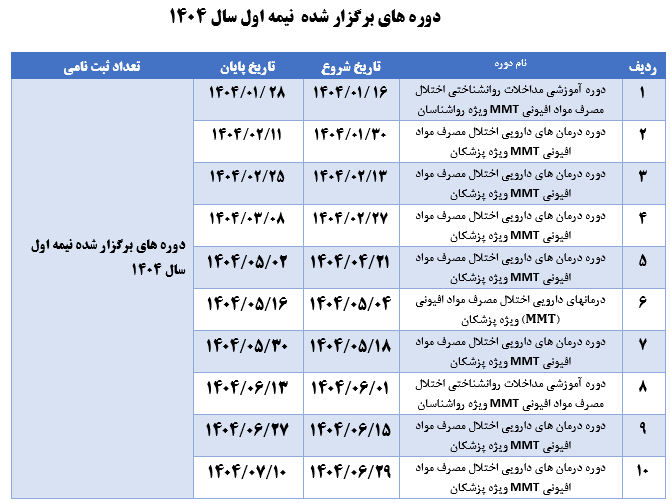 دوره آموزشی درمانهای دارویی اختلال مصرف مواد افیونی (MMT) ویژه پزشکان